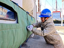 全員加班為變電站設(shè)備做防凍保溫,為網(wǎng)控變電站的關(guān)鍵開關(guān)設(shè)備“穿”上定制保溫棉衣;另一路由經(jīng)驗(yàn)豐富的老員工牽頭,對(duì)空壓機(jī)管路及附屬設(shè)施加裝保溫層,”班長(zhǎng)趙詩(shī)宇一邊指導(dǎo)年輕員工郝巖包裹開關(guān)接線口。